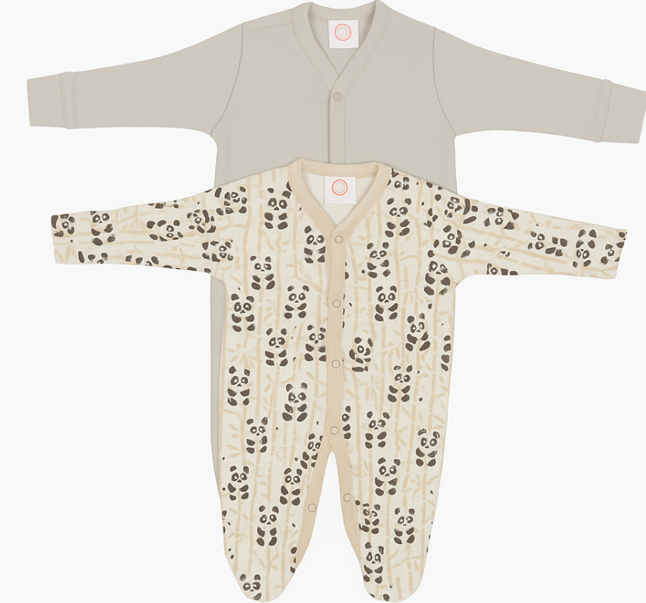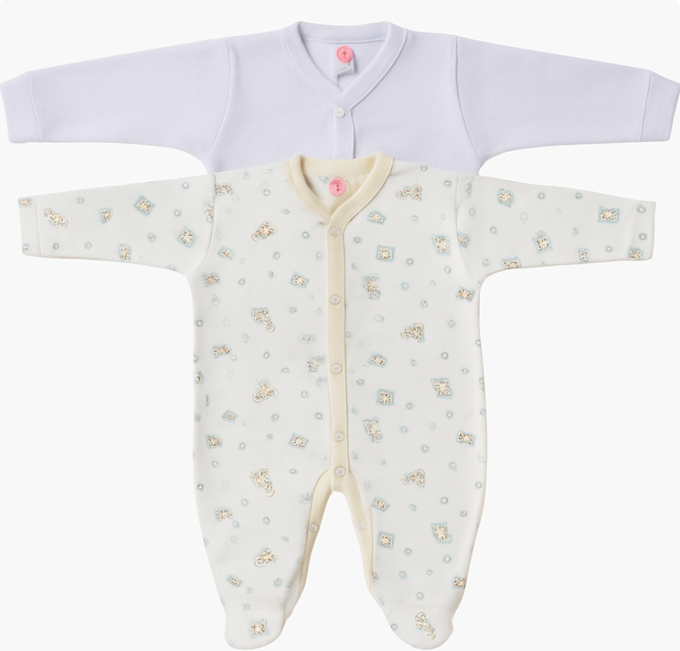 Pack x2 Enterito Manga Larga Estampado y Liso blanco