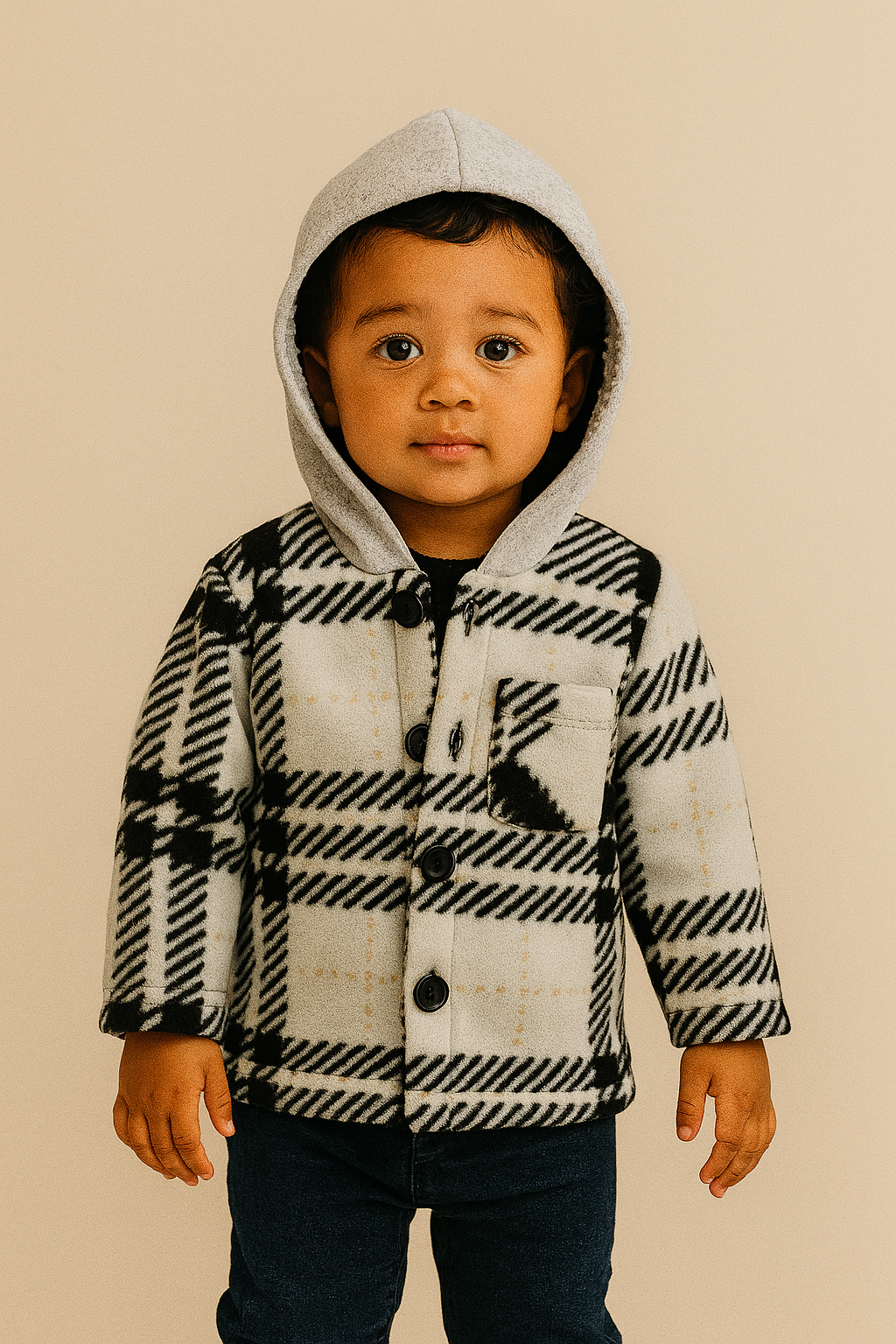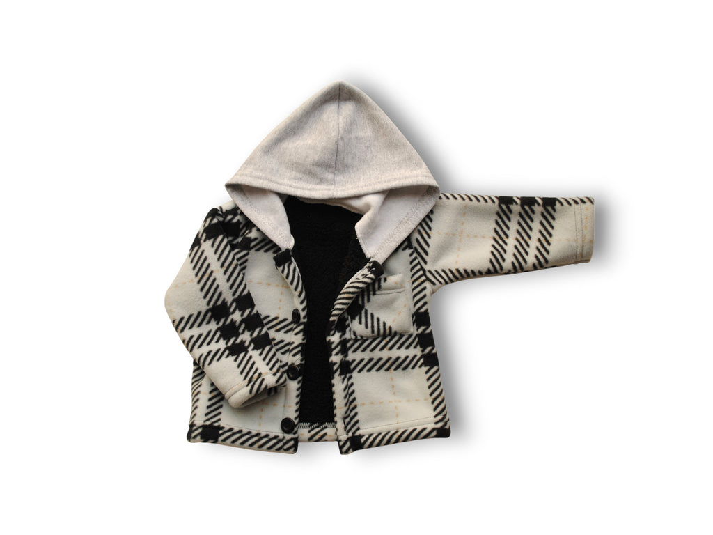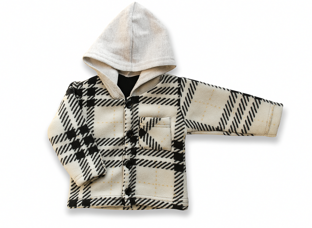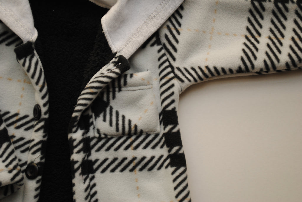Camisaco cuadrille con capucha y cordero Blanco y Negro