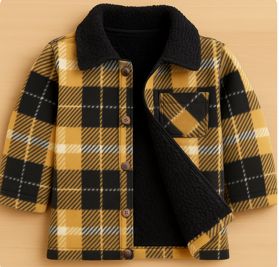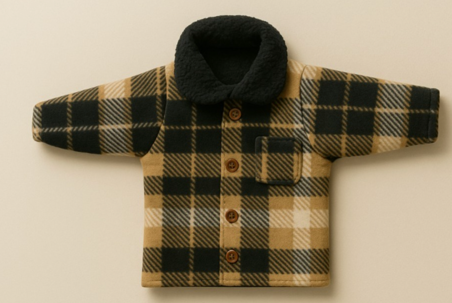 Camisaco cuadrille con cordero Beige y Negro