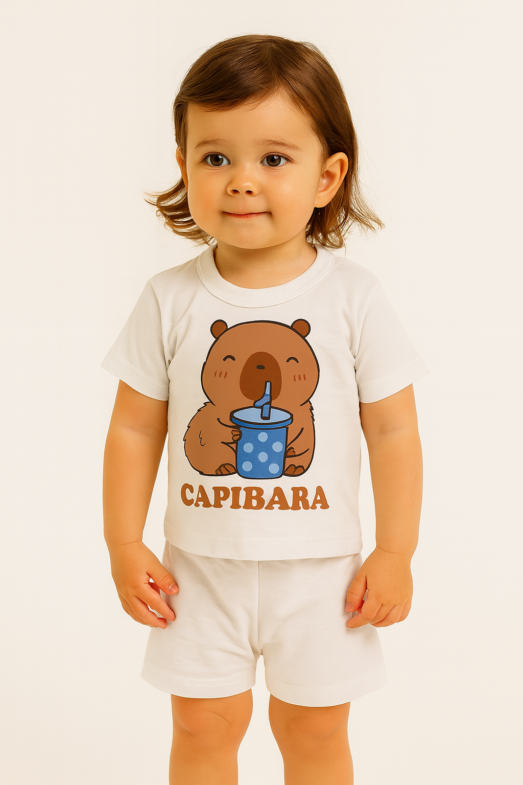 Conjunto Remera con estampa y short liso Blanco