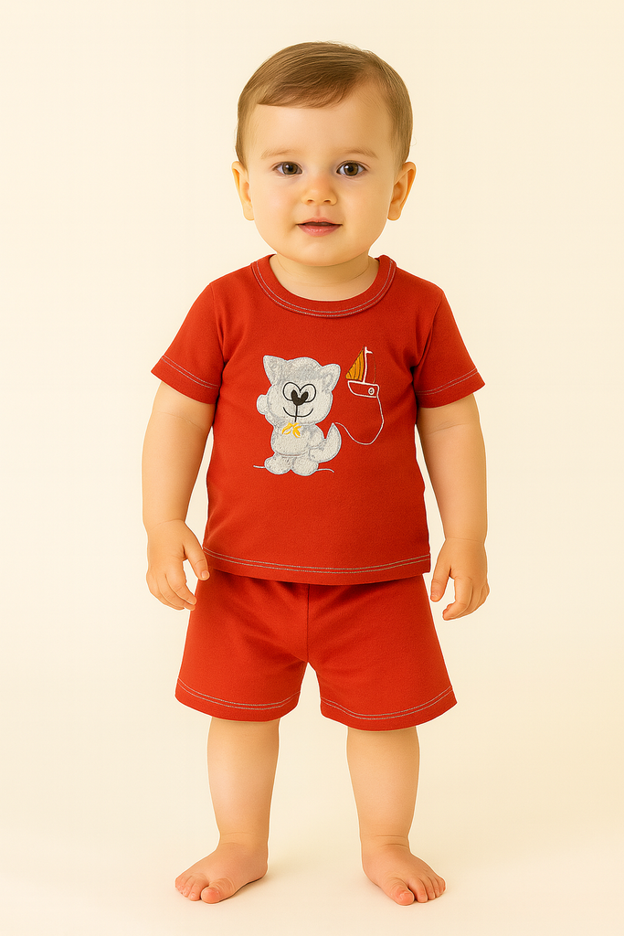 Conjunto Remera con estampa y short liso Rojo
