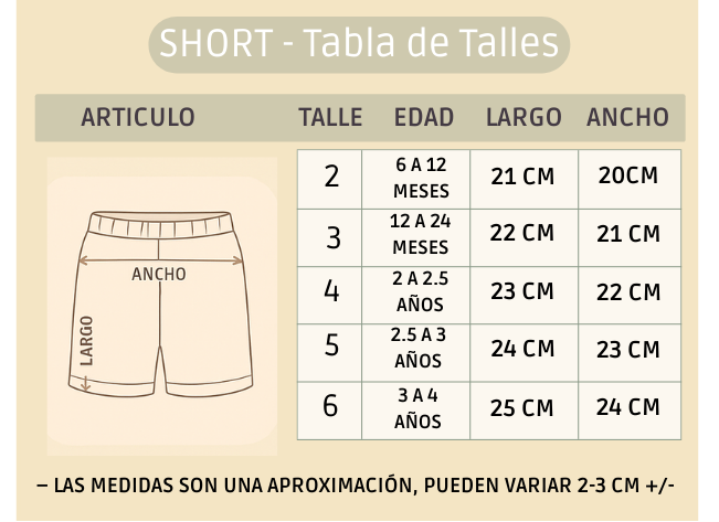 - Talle 2, 3, 4, 5, 6